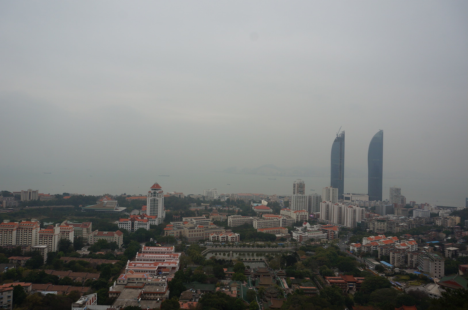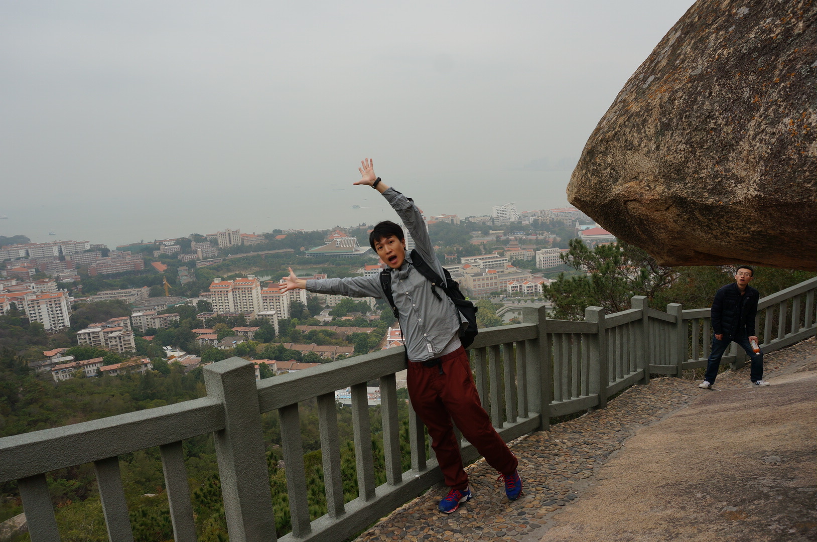 花了一个小时爬到山上,一个人无聊,看着厦门大学的全景,自拍一个吧。