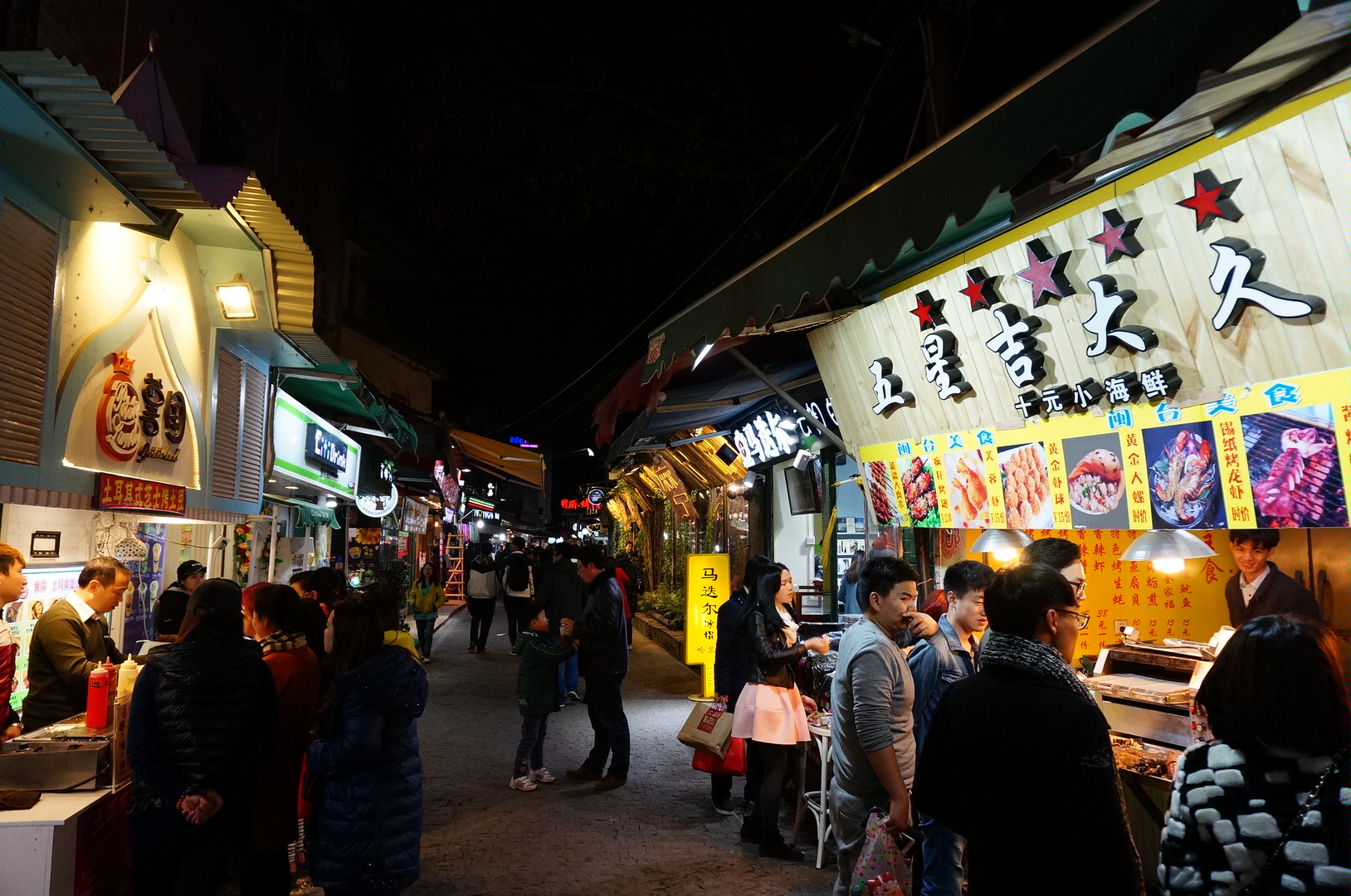 晚上到小店聚集的曾厝垵走走看看。本来想吃厦门的特色小吃沙茶面的,不过店家说,像叻沙的沙茶面原来是很辣的。那我只好吃个咖喱海鲜面吧,还好材料都很新鲜,也不错!