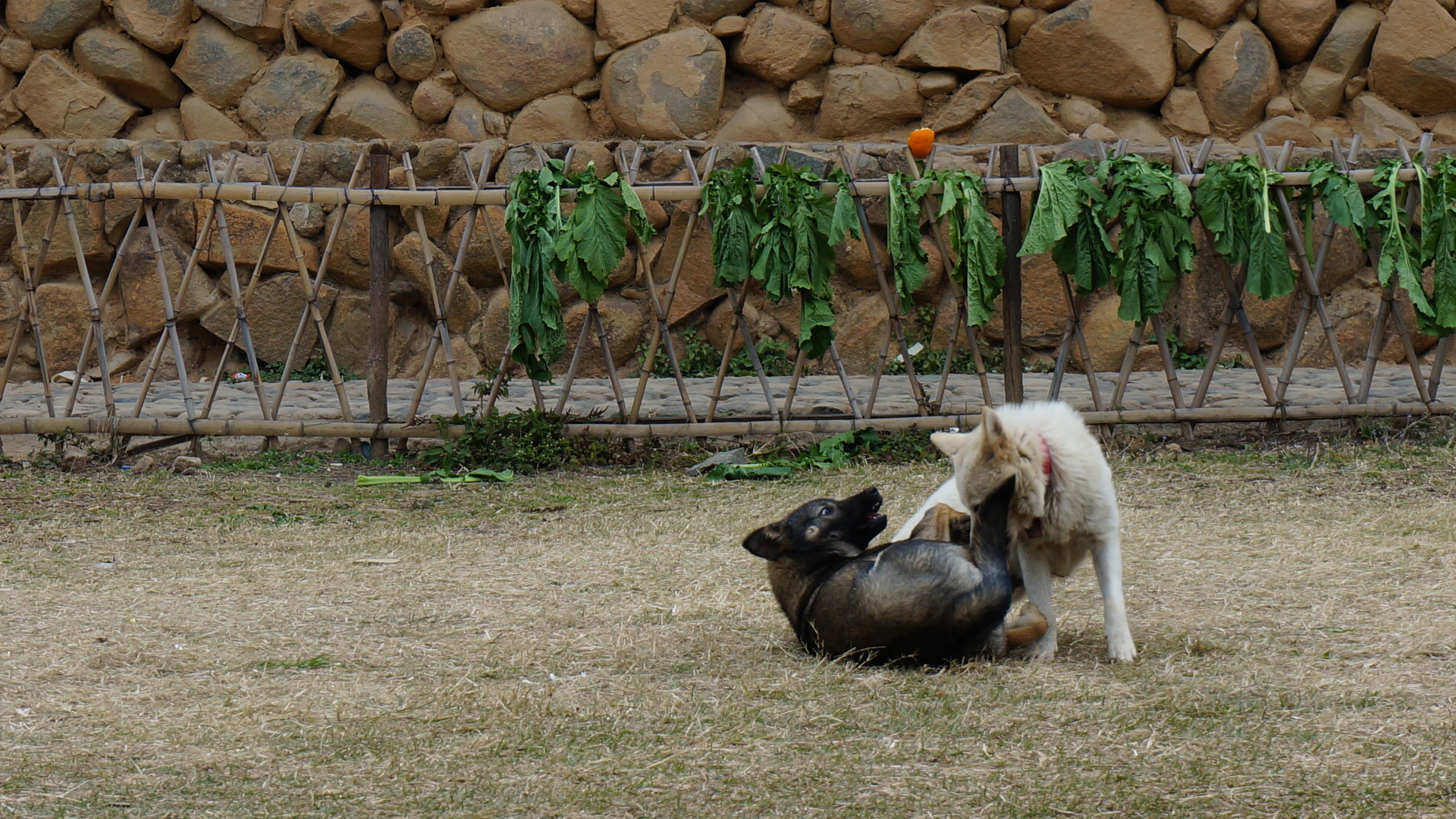 恣意玩耍的一对小狗