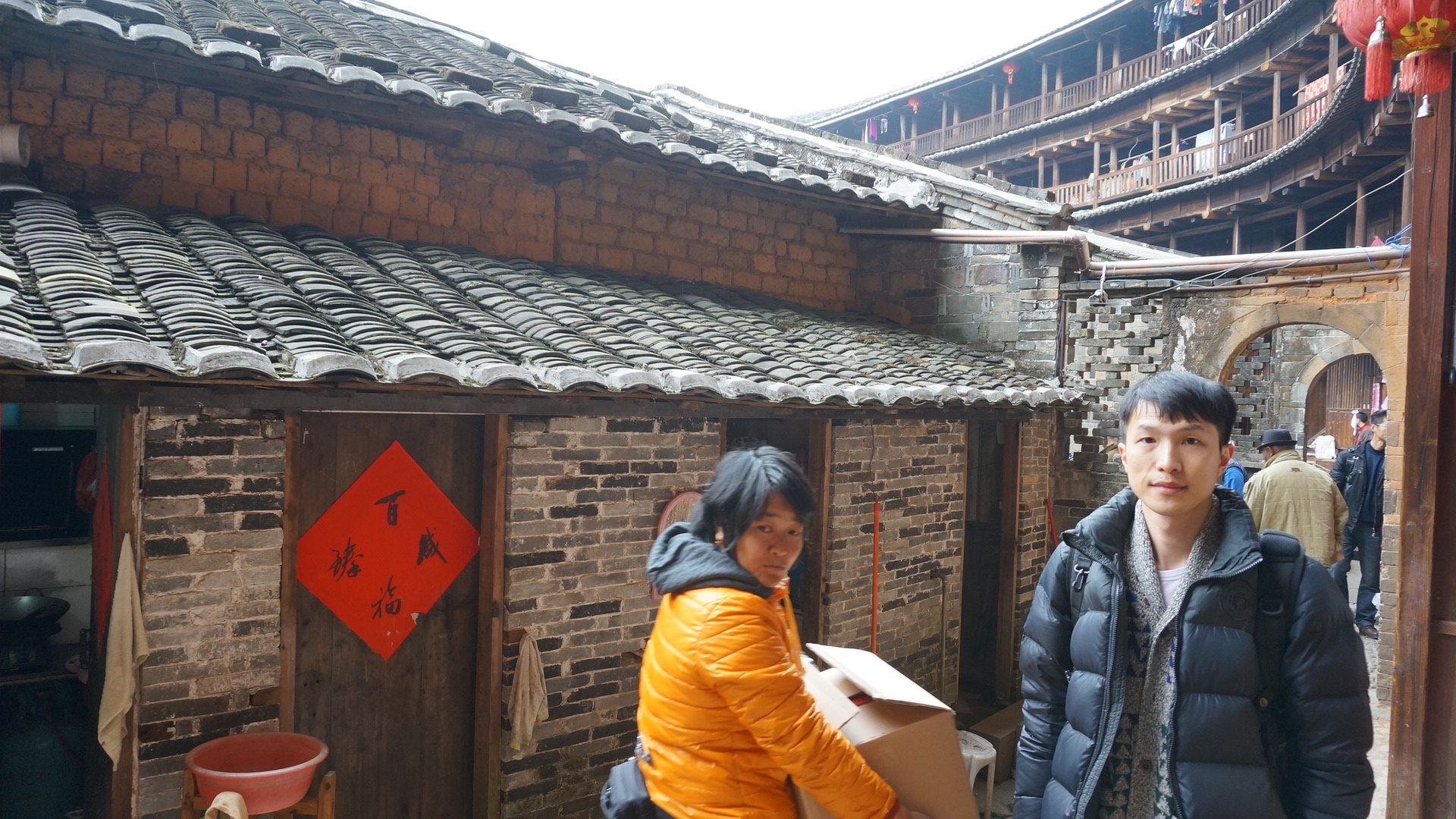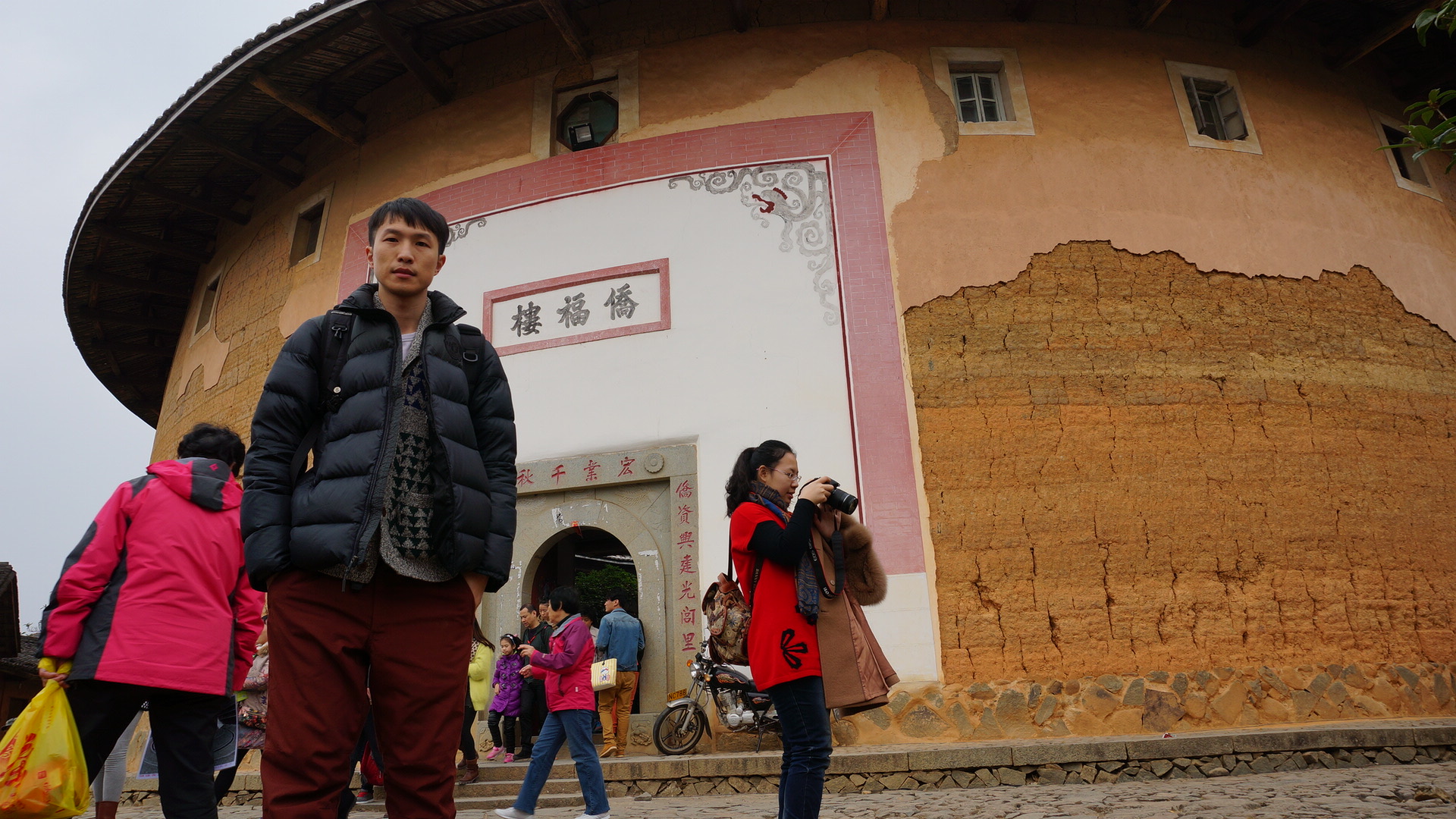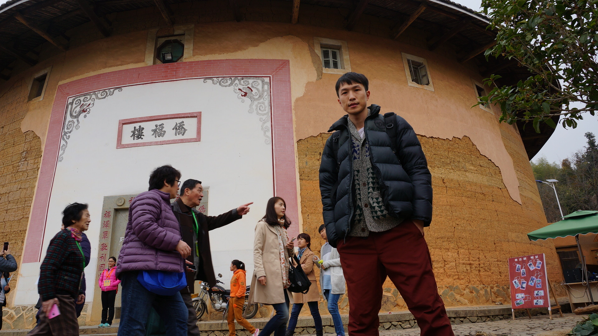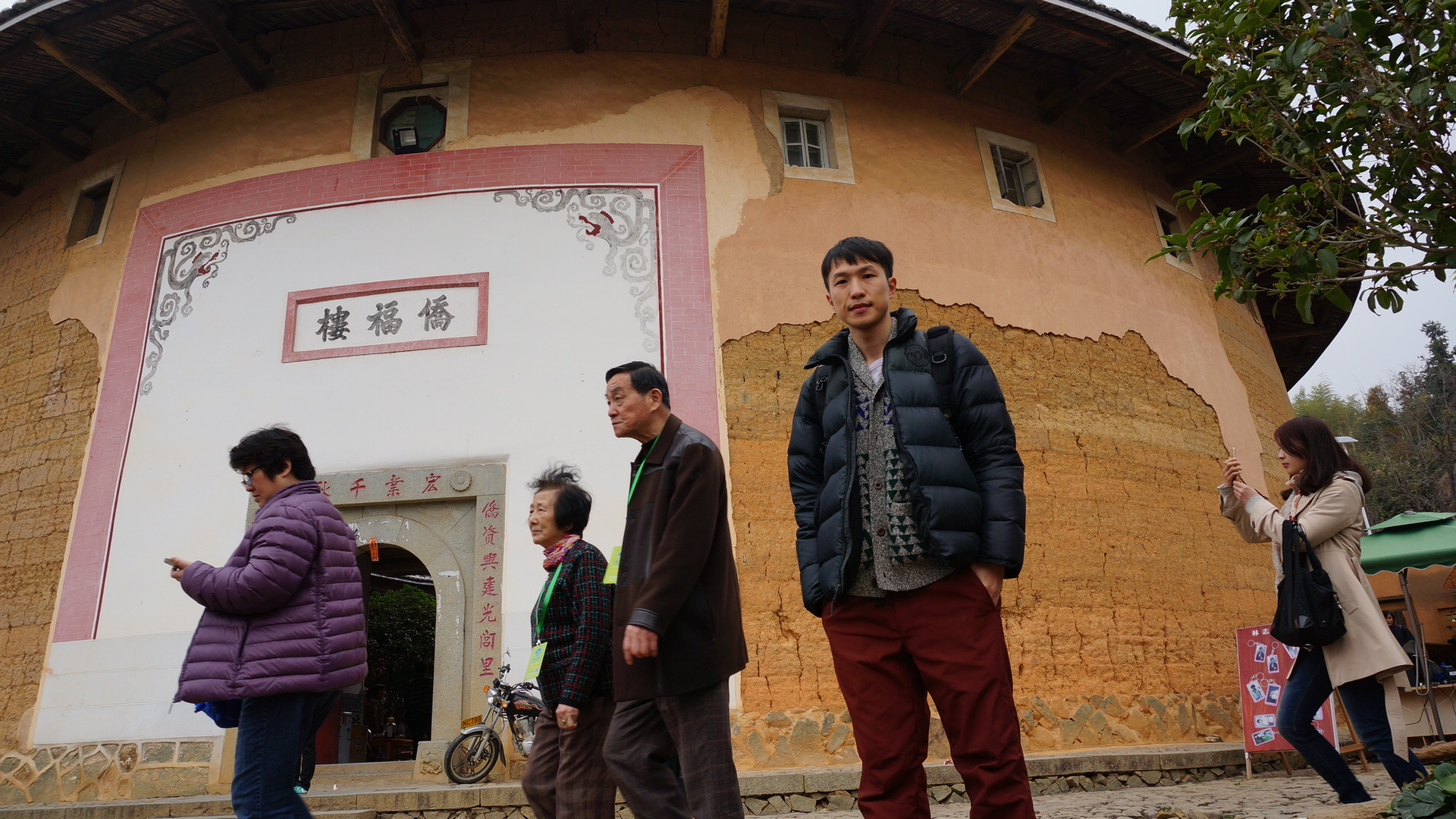 午餐之后就开始参观土楼了。导游是原居民,感觉还不错,就是扬声器有点太大声了。现在连故宫都限制扬声器了,之前到云南大理古城的时候每人会发一个耳机听导游的讲解,这样就不会骚扰到别人了。
