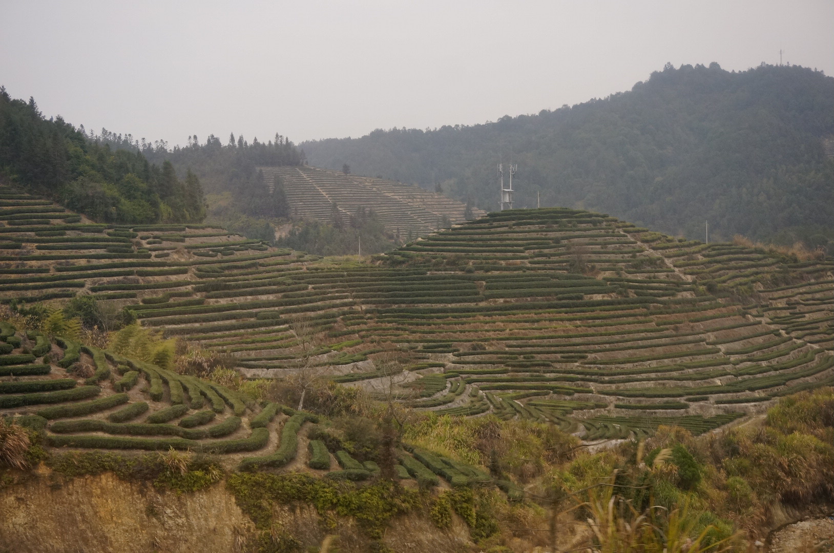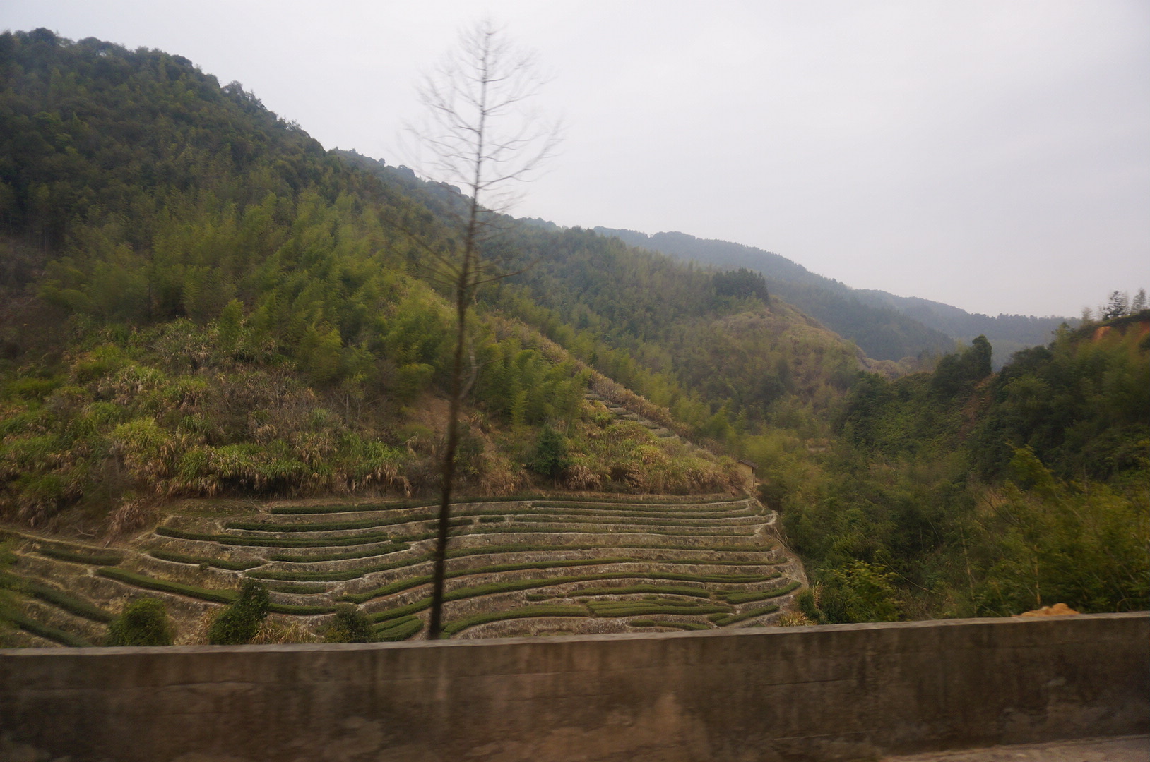 回程时候总算拍到早上在车的另一边拍不到的景色,一圈一圈的估计是茶园。