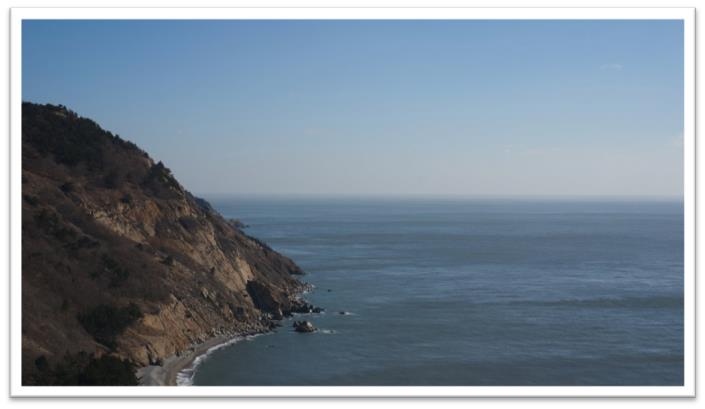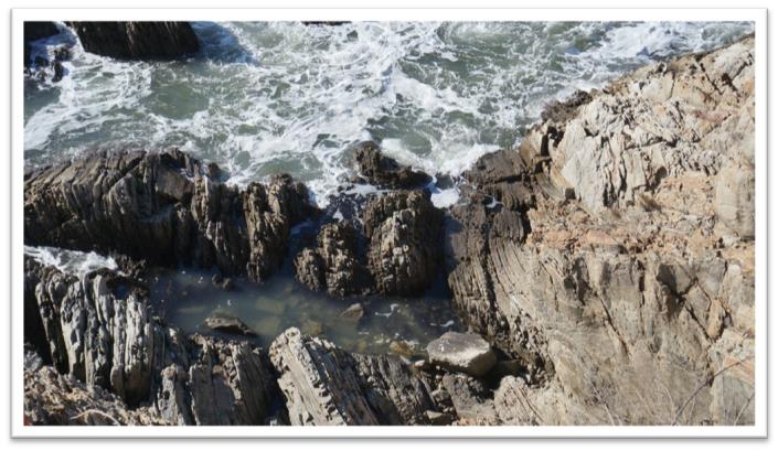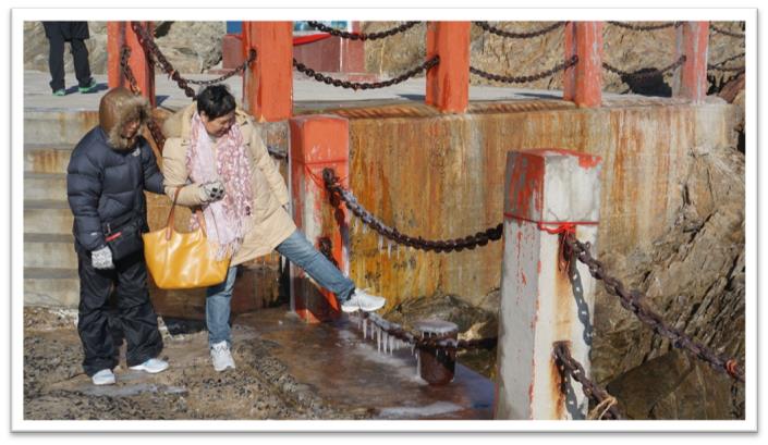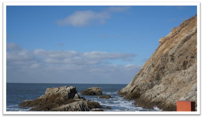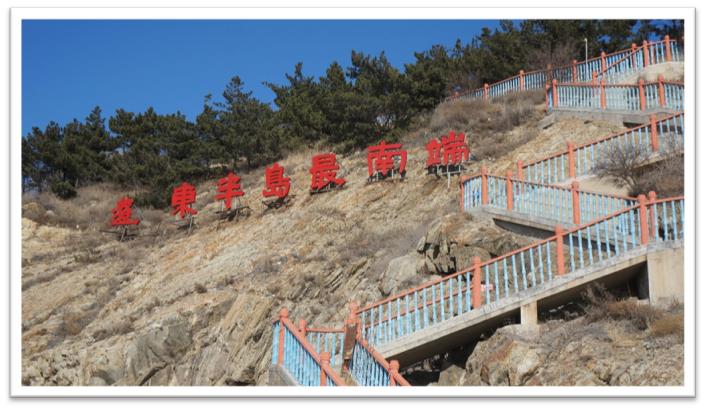 景区游人可能只有10个人吧,很小的一个地方,今天的黄渤海分界线也不是十分明显,没有呈现出2种颜色海水的效果,倒是从浪的分布上隐约看出来一条分界线,究竟是不是真的呢?只凭诸君的想象了。这里还是当年张健横渡到山东威海的下水点,辽东半岛最南点。