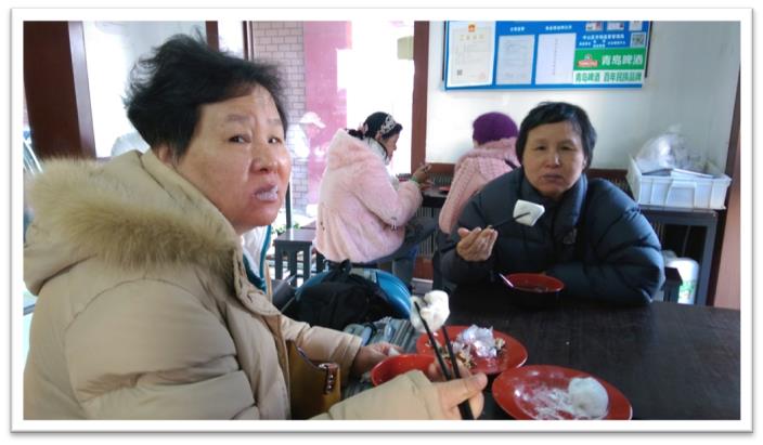 午饭是到火车站旁边的糯米香吃粘豆包、红豆粥、芝麻包这些甜点,非常补充体力和暖和。