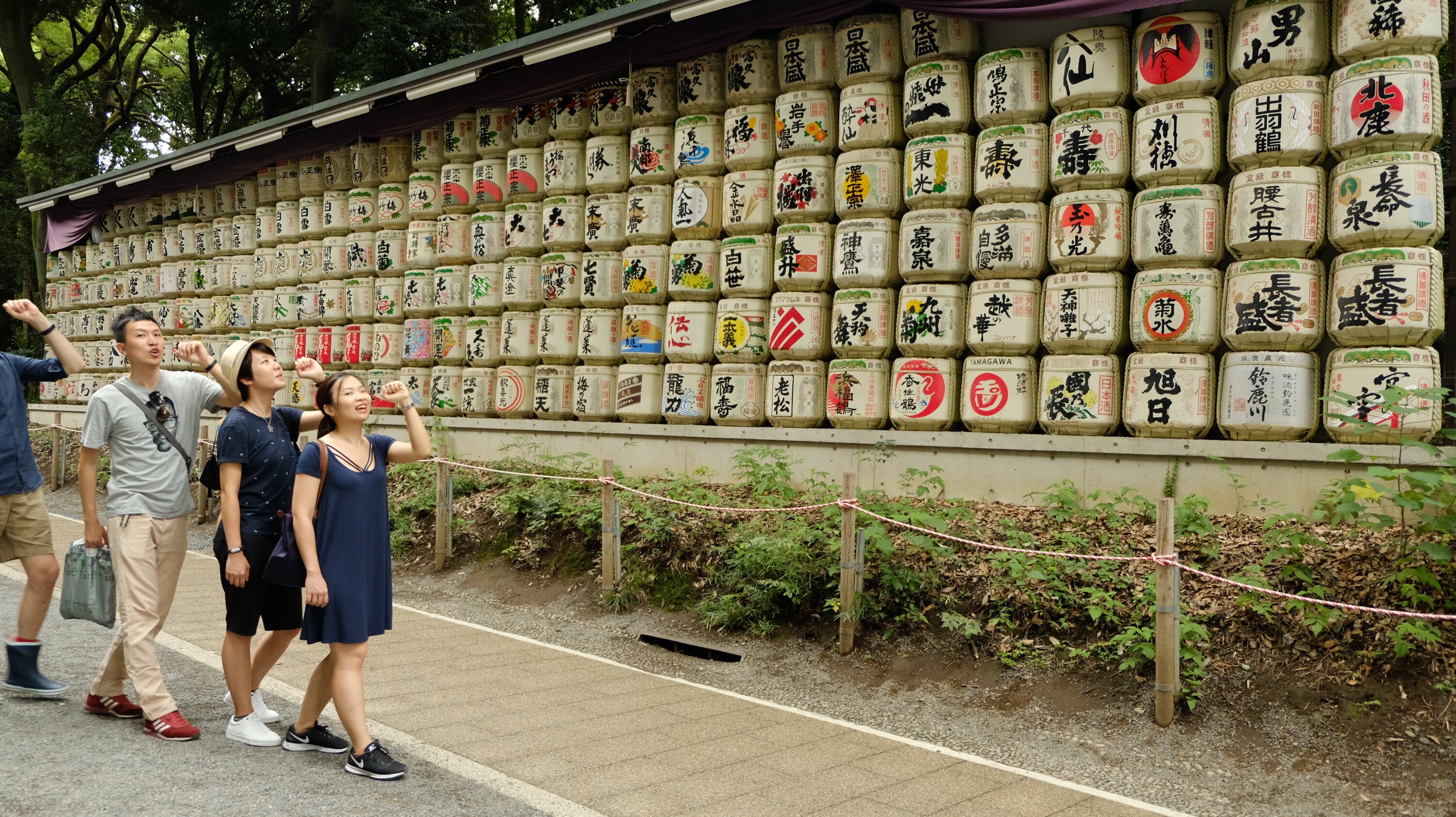 南參道盡頭兩旁各有一列酒桶:左列是西方葡萄酒酒桶,右列是日本清酒酒桶。