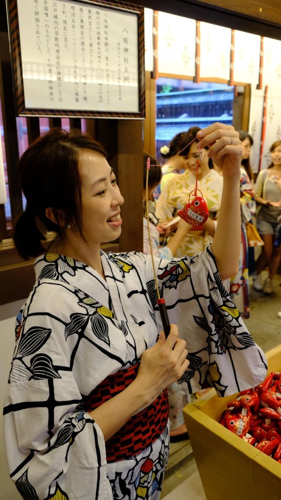 冰川神社1500年以来一直以戀愛神社闻名,同时在舉行風鈴節,裏面有好多年輕嘅男女。不過可惜落大雨,一路擔遮一路着浴衣有啲狼狽。