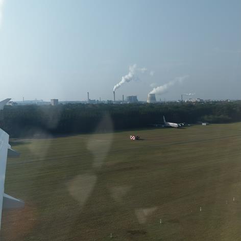 总算到达柏林机场了,怎么机场草坪上还有一架报废的飞机?