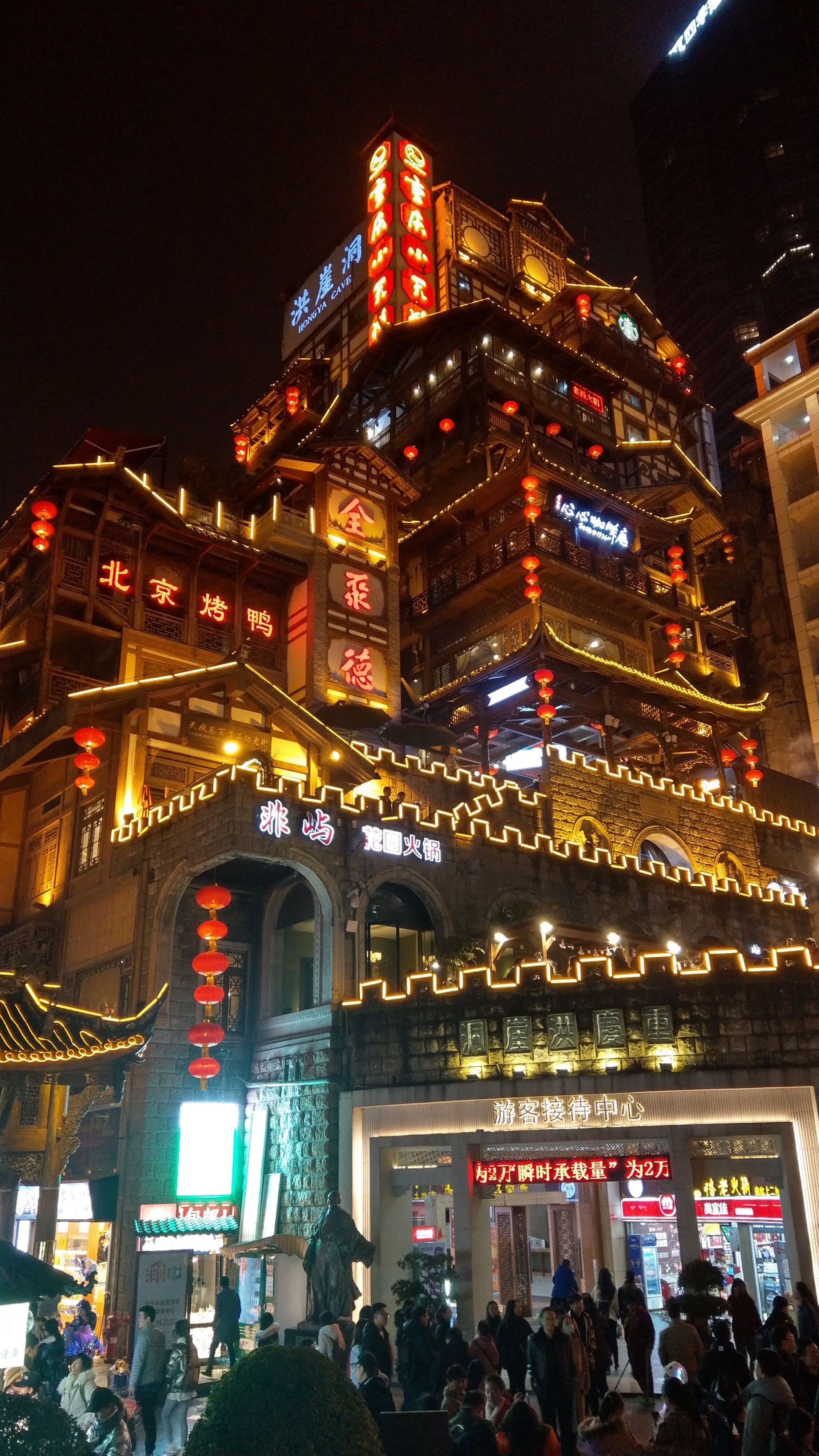 吃完飯,往山下走,由解放碑廣場行去洪崖洞。