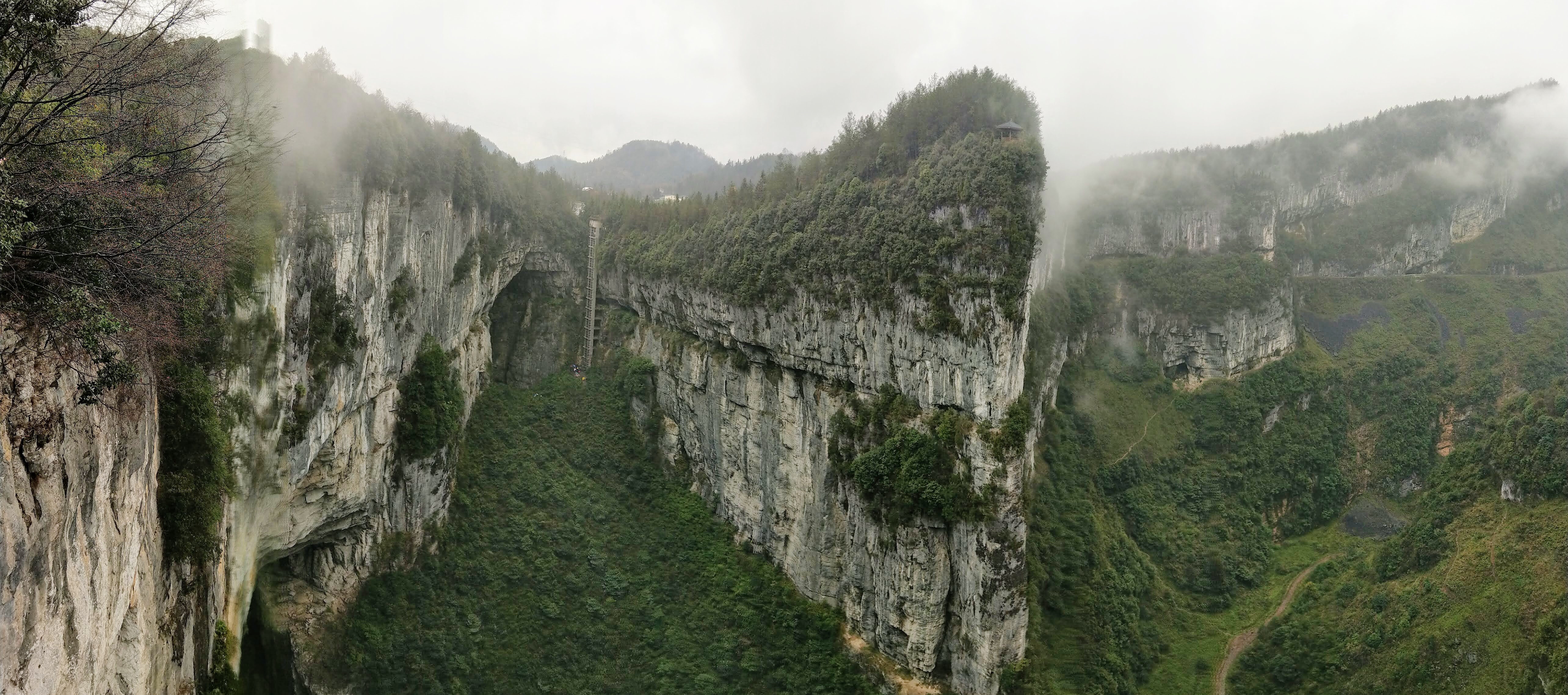 在天生三橋上面的玻璃平台怕全景,可惜落雨