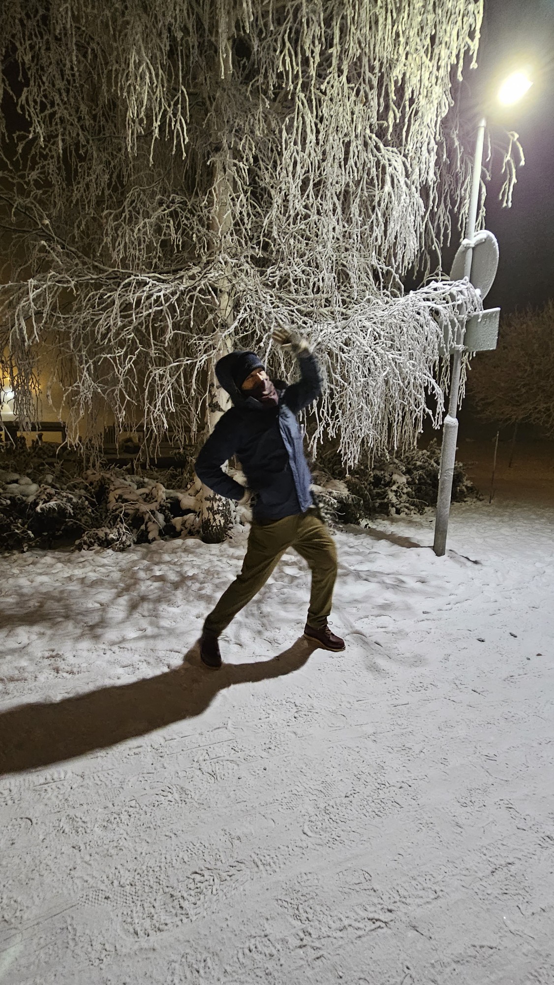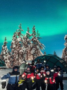 來到北極圈,當然要嘗試找尋北極光。 約起團友晚飯後出發。我自己也是全副裝備,戴上厚的冷帽,羽絨加防風外套,還戴了兩副手套
