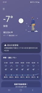 經過昨天-22°的爆擊之後, 見到今日天氣預告只是-7-8°,頓時鬆一口氣。